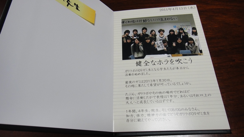 作りました。(大学全体のアルバムはいつも通り、09ゼミ生がガリラボ用に注文して